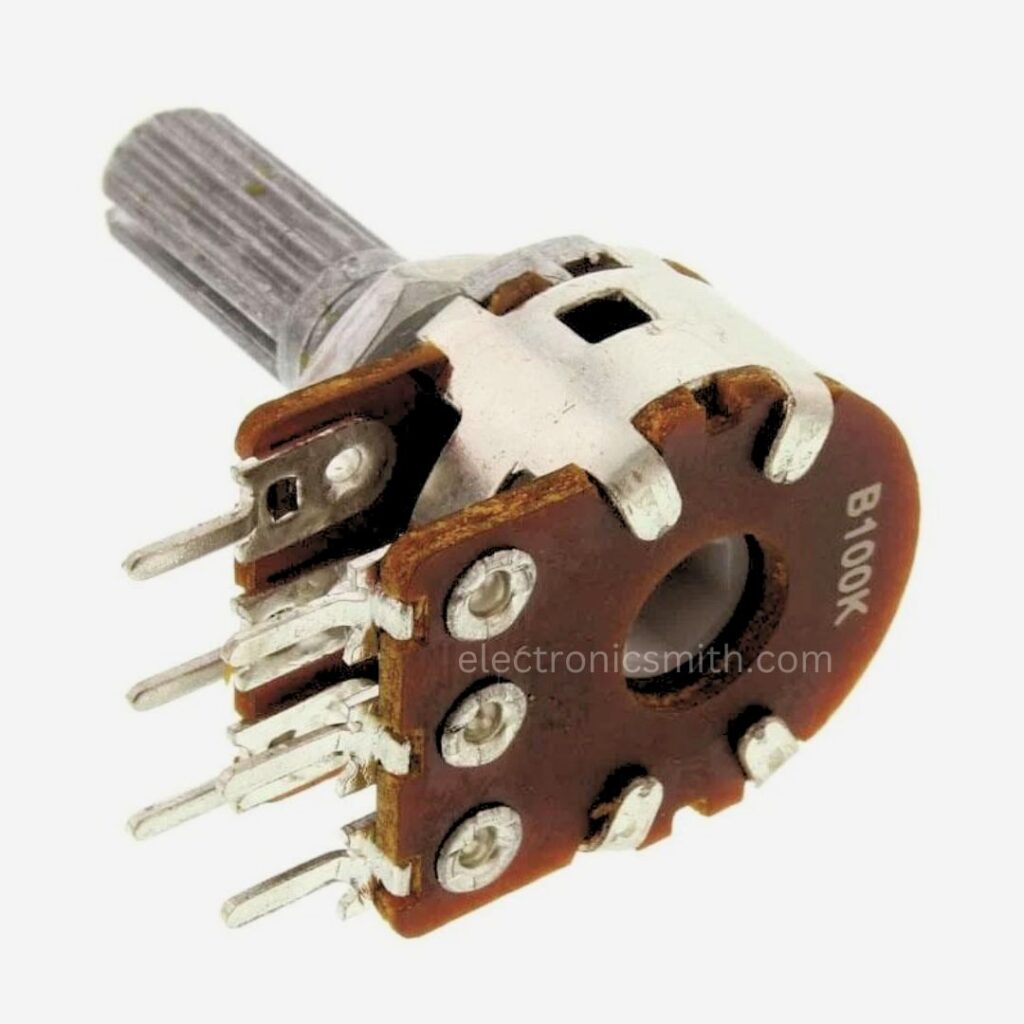 The wiper is mounted to a rotating shaft. This wiper moves over the carbon track that varies resistance. It is this smooth yet precise movement that makes potentiometers so good. - Housing and Protection: